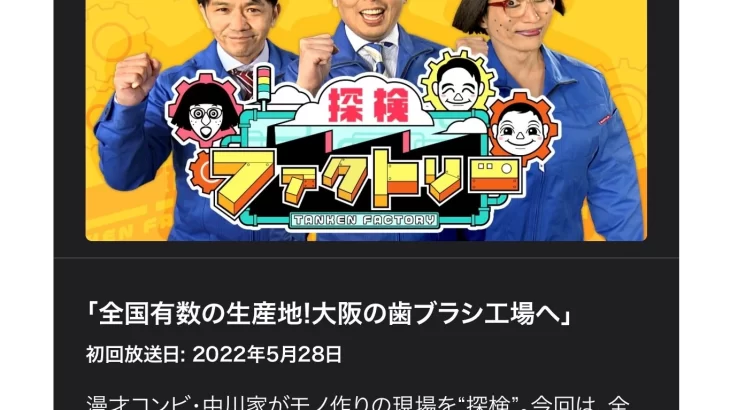 2ヶ月前にNHK総合番組「探検ファクトリー」で 放映された「全国有数の生産地!大阪の歯ブラシ工場へ」が好評だったので再放送が決定しました! 歯ブラシ作りのこだわりポイントや新しい発見など、何度見ても楽しい内容です! 「全国有数の生産地!大阪の歯ブラシ工場へ」 – 探検ファクトリー – NHK NHK総合「全国有数の生産地!大阪の歯ブラシ工場へ」放送日時:2022年7月30日 […]